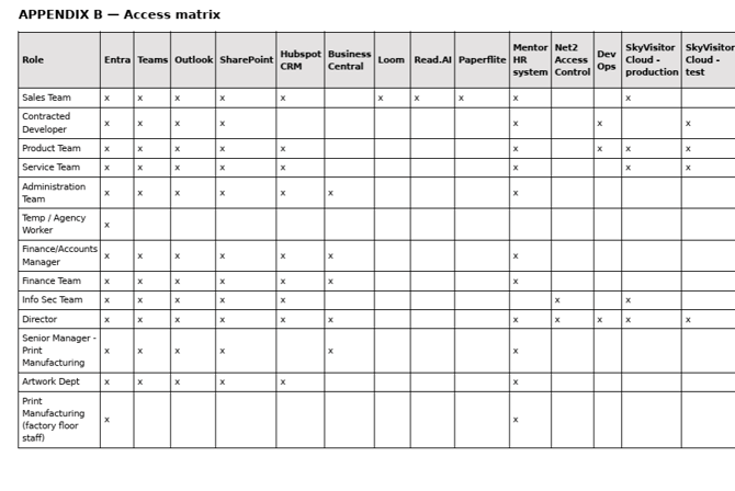 safetynetsolutions.co.uk will ensure that access and privileges conform to the following standard: