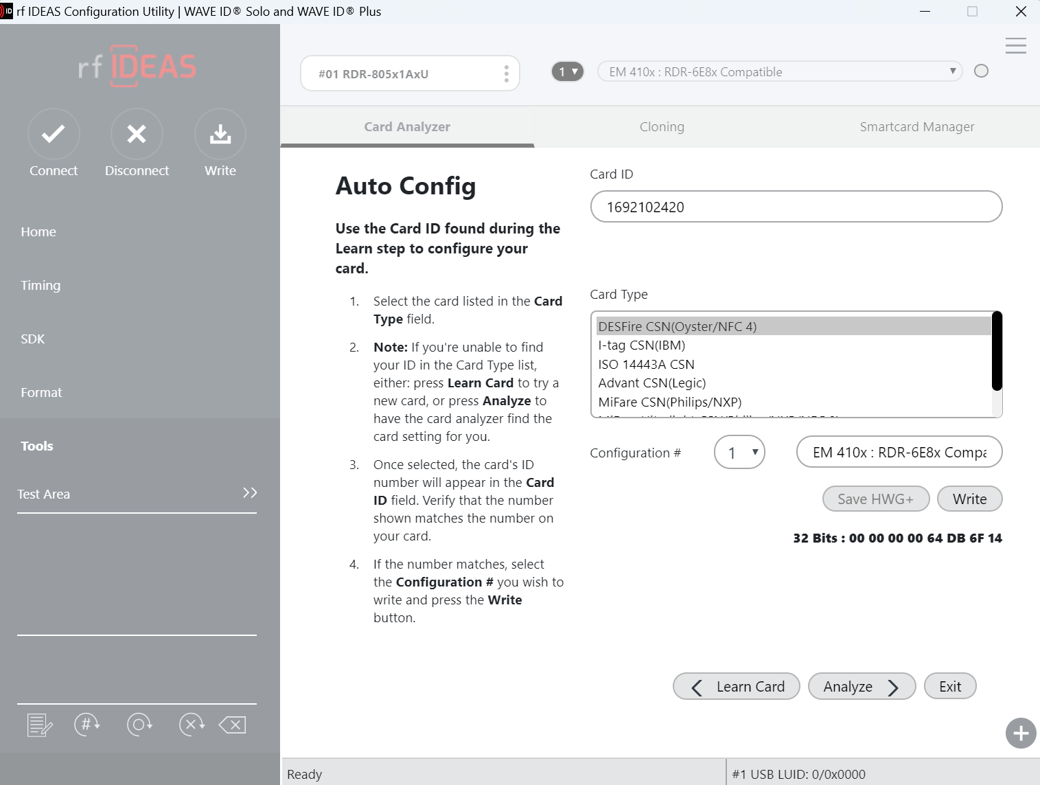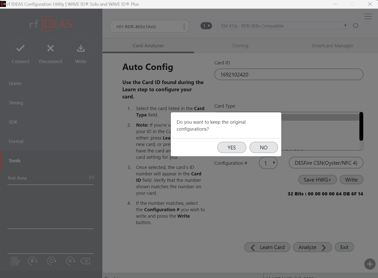 Step 8 - Select the correct card type from the list of recommended profiles and then select "Write" making sure to follow the on screen instruction to remove the card from the reader. IF you do not know which is the correct card type then you will have to go through each card type until it works and then make a note of it for future reference.