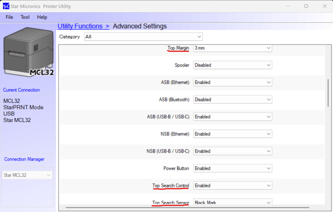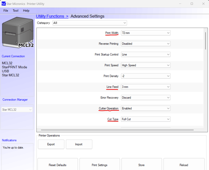 Once the printer is turned on and connected, install the Star Printer Drivers and load the Star Micronics Printer Utility. They can be downloaded from TEAMS here: https://safetynetsolutions.sharepoint.com/:f:/s/SShhhhhhhh/EvEnDm03sKhEt5nWlI4gPGABbVC7tvNjp4sDyZjEK_d_HQ?e=7XRvWm